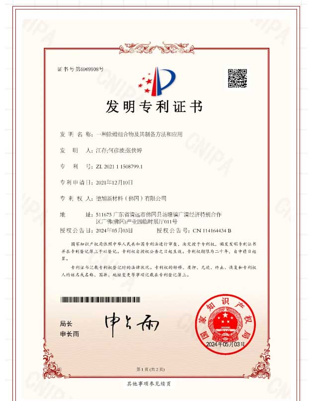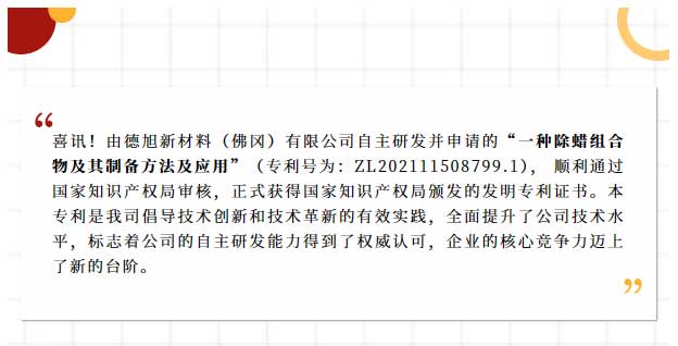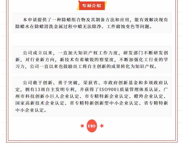 喜讯!热烈庆祝我司获得发明专利授权--一种除蜡组合物及其制备方法及应用